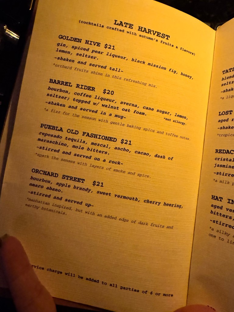 PDT (Please Don’t Tell), escondido dentro de la famosa tienda de hot dogs Crif Dogs en East Village, es quizás el speakeasy más icónico y mejor guardado de Nueva York, a pesar de su fama mundial. Para entrar, debes pasar por una cabina telefónica antigua dentro de Crif Dogs. Descolgas el auricular, y si tienes una reserva, te abrirán la pared falsa que es la entrada.